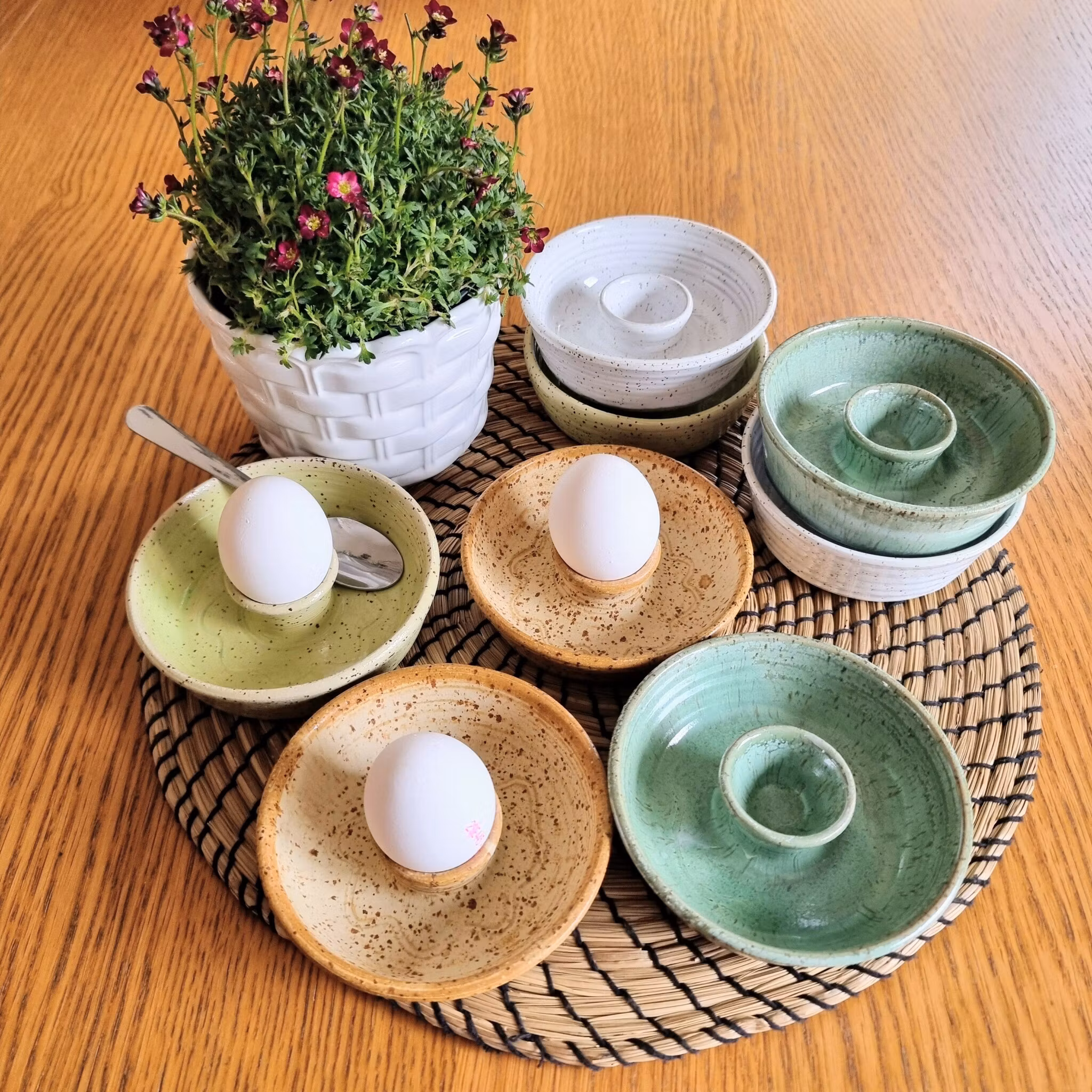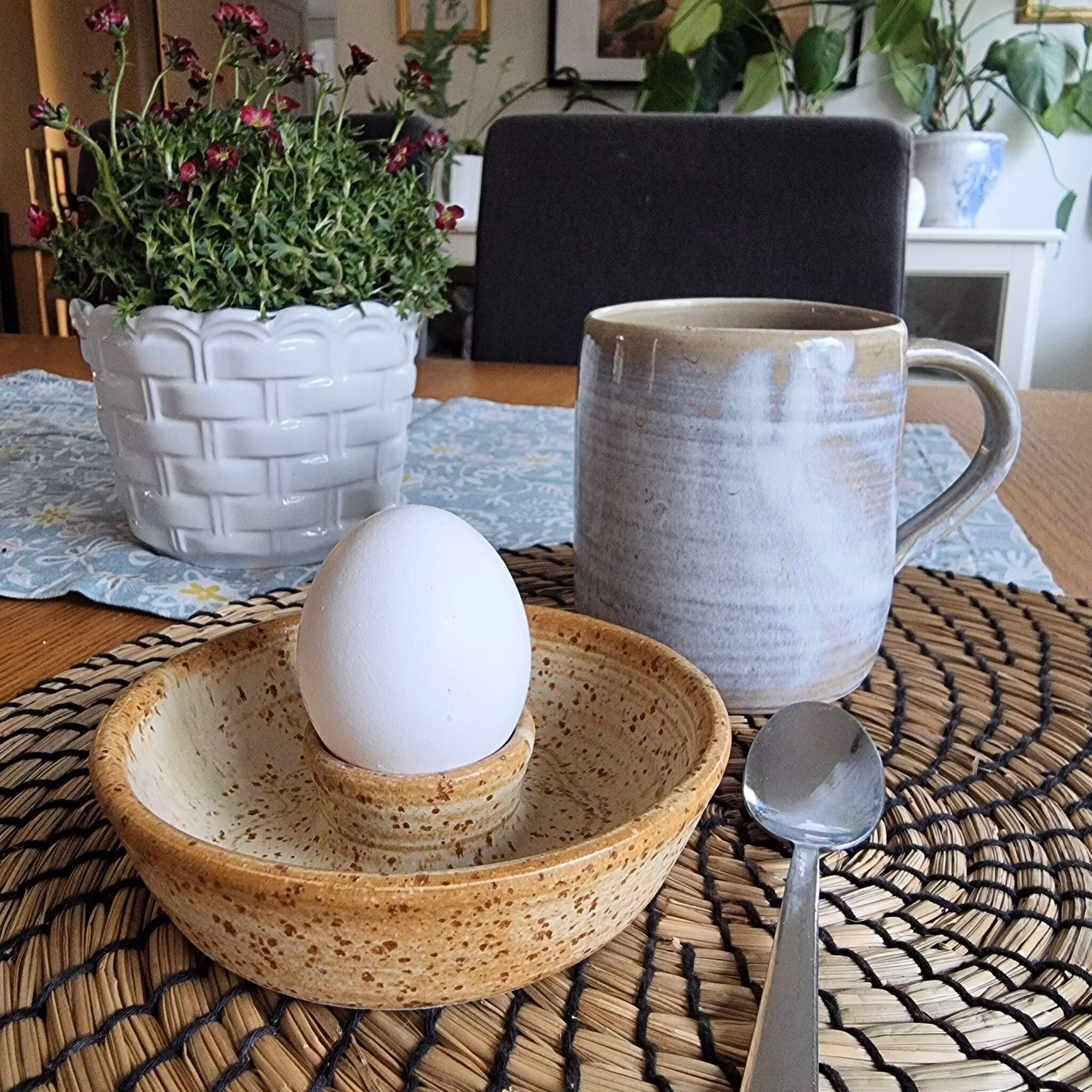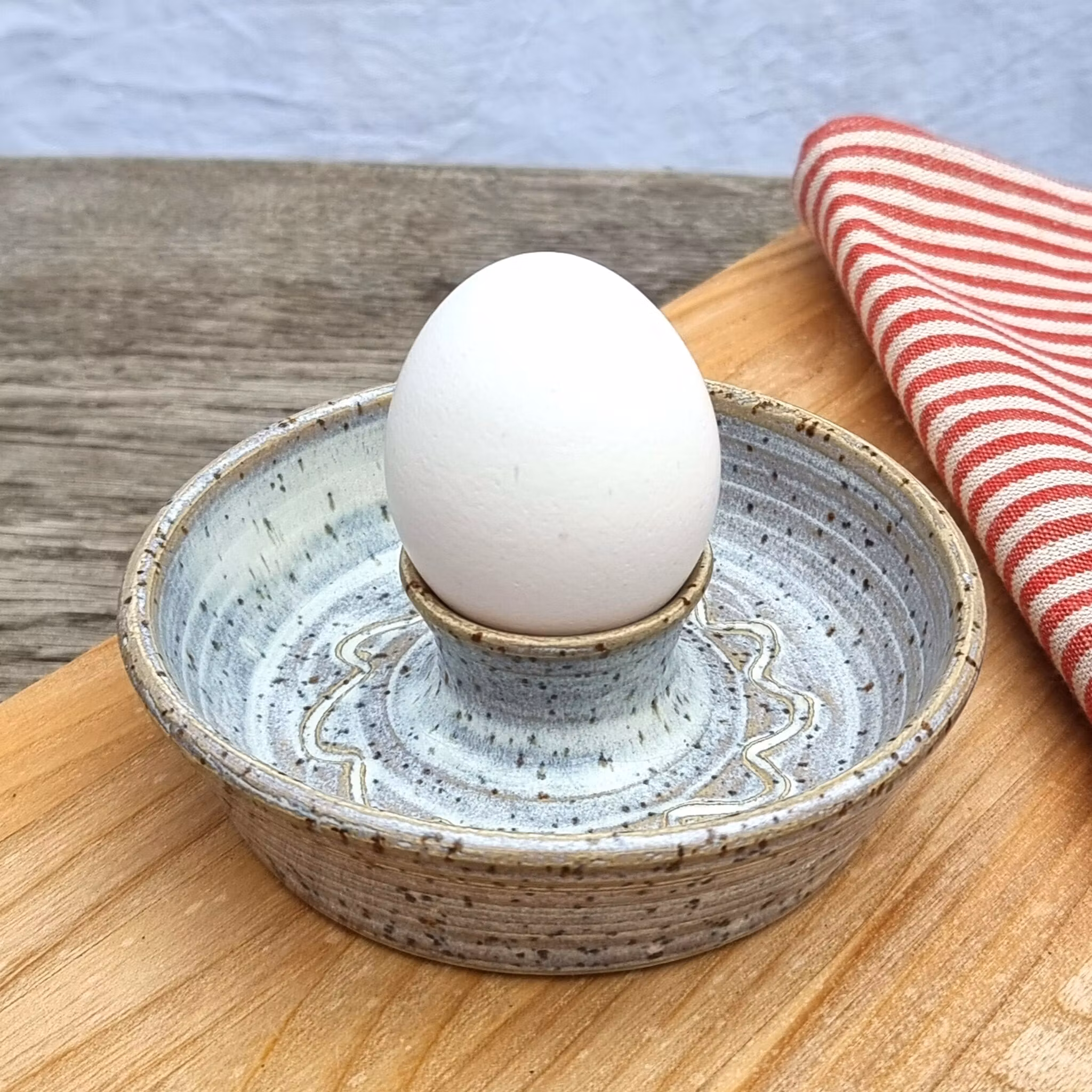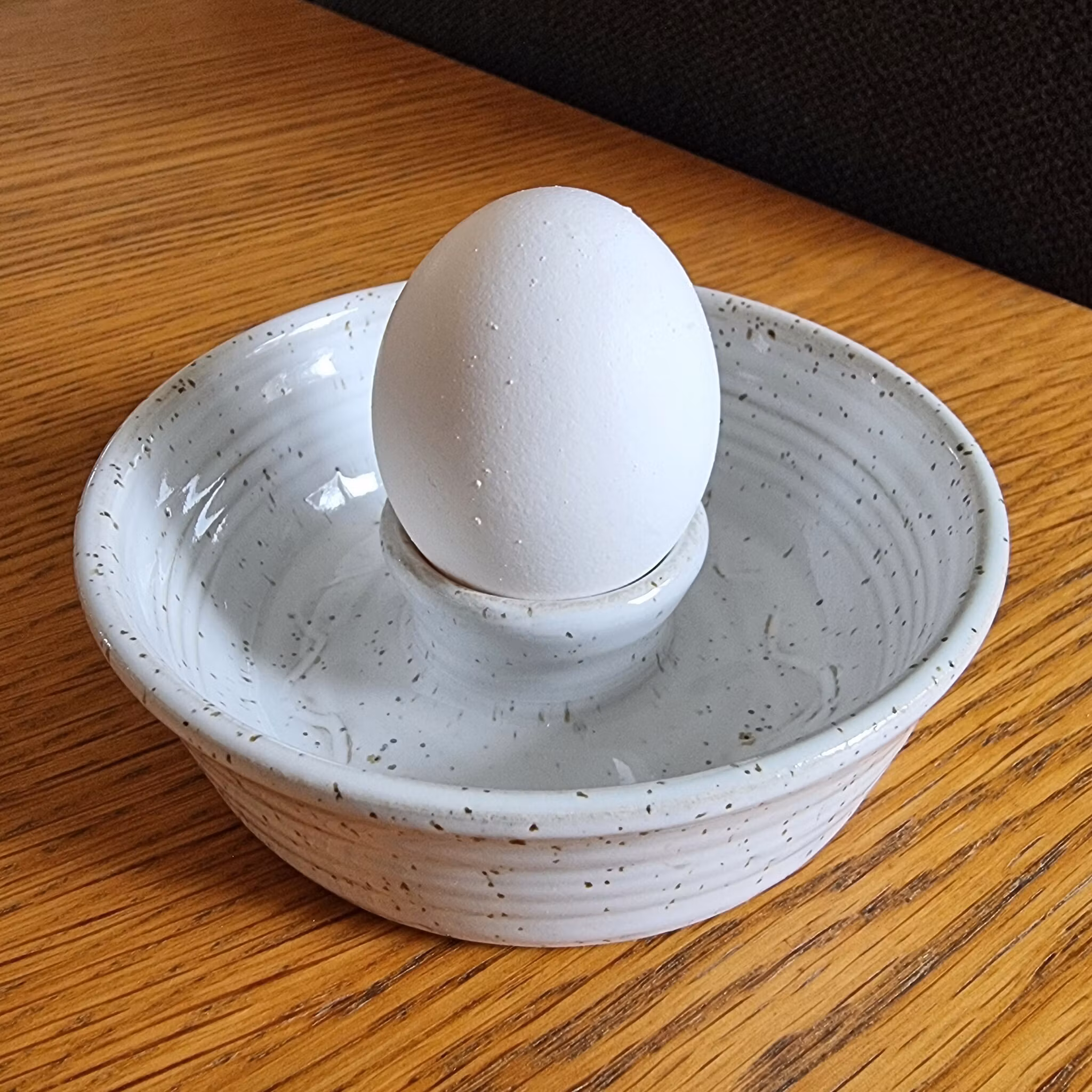 Äggkopp med praktiskt fat att lägga äggskalet i.